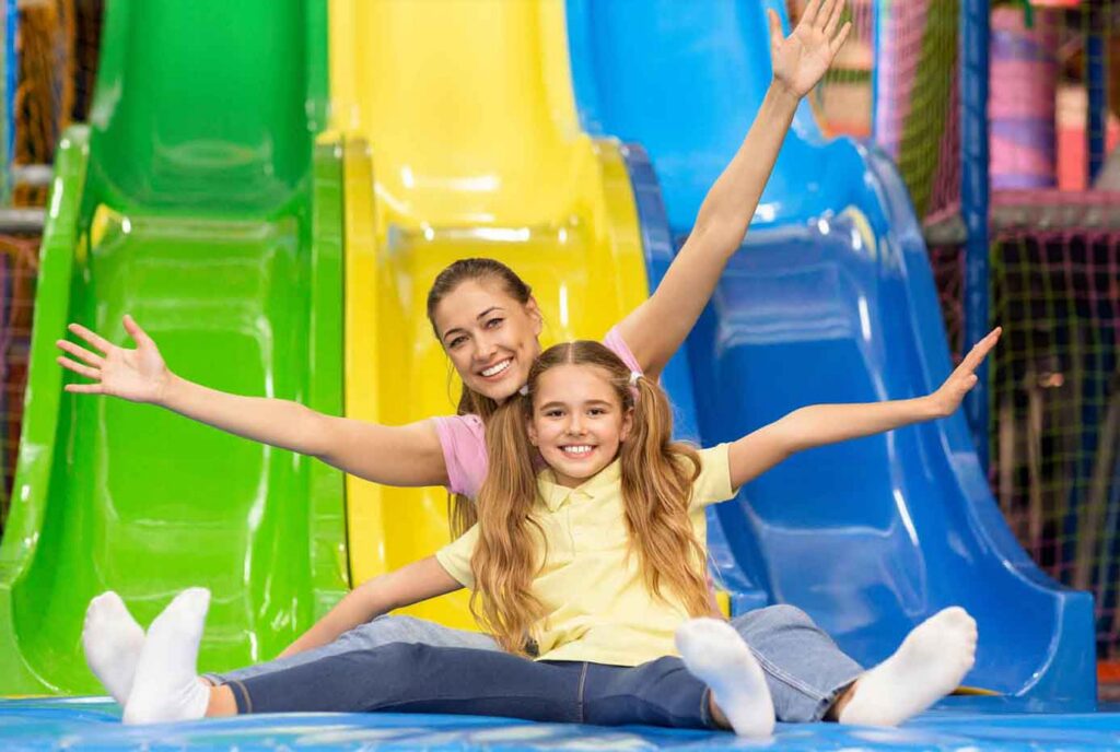Our center is designed as an all-day adventure destination where open play, unforgettable birthday parties, and high-energy group events all come together under one immersive roof. Blending the thrill of trampolines, ropes courses, ninja challenges, zip lines, climbing walls, soft play, arcades, and glow-in-the-dark party rooms, the park goes beyond a typical indoor adventure experience.